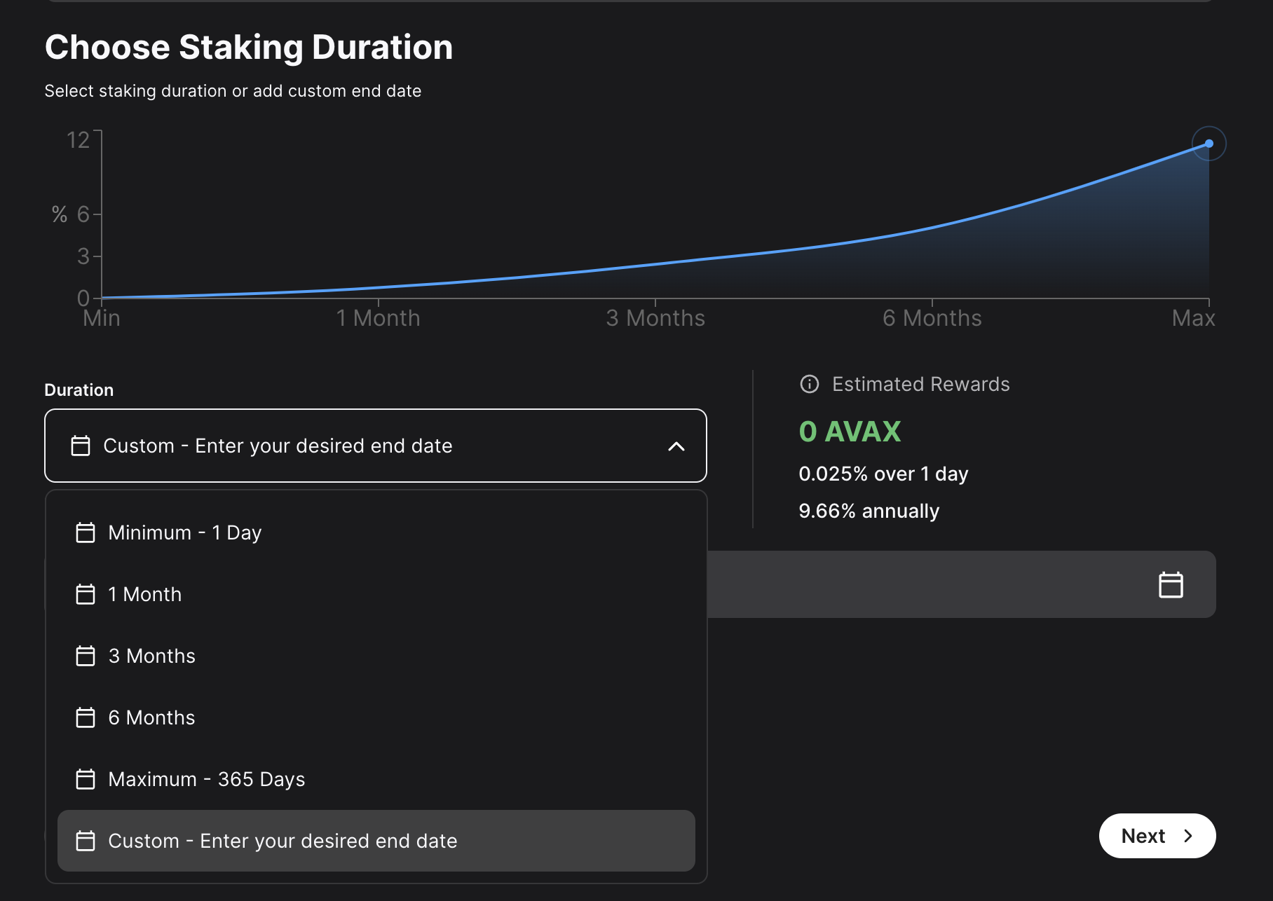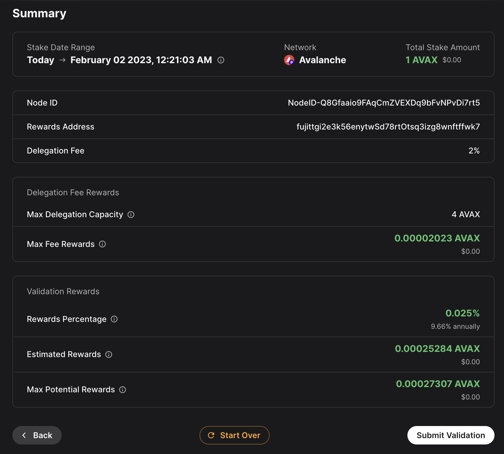 • Staking End Date: Your AVAX tokens will be locked until this date.