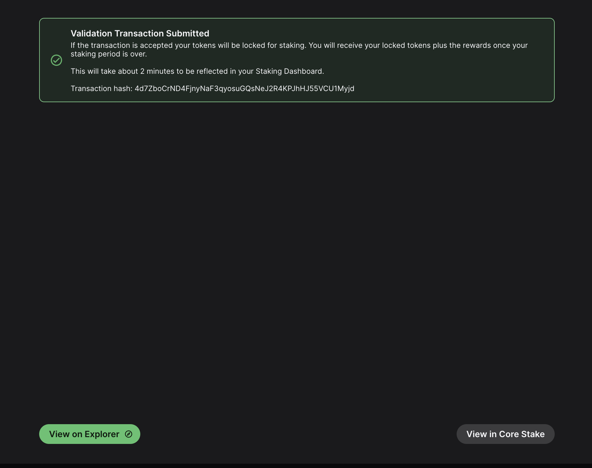 After the transaction is approved, you will see a message saying that your validation transaction was submitted.