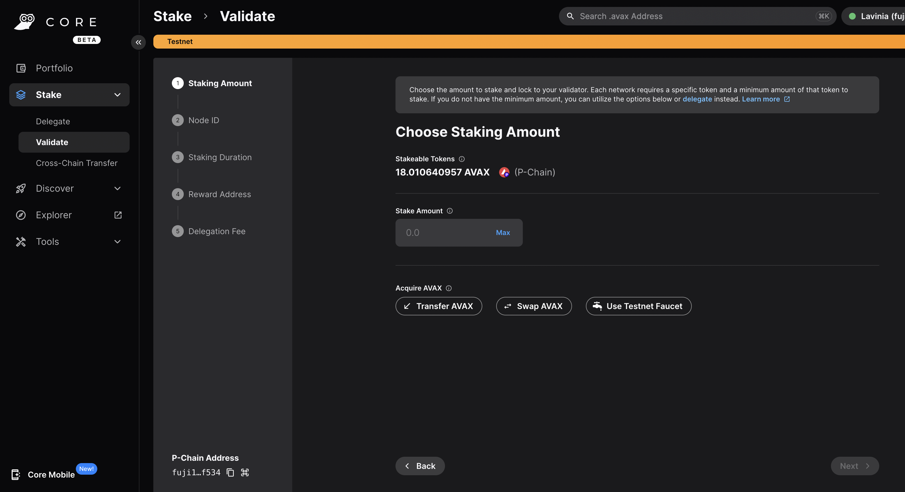 Add Node as Validator on Fuji via Core web